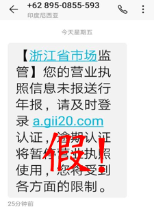 “由于您的营业执照未进行年终上报,请点击该网站立即上报,延时将撤销使用权,无法正常使用!”