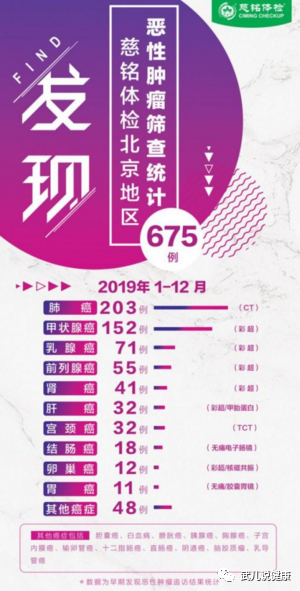 近日,慈铭体检发布2019年恶性肿瘤筛查统计。