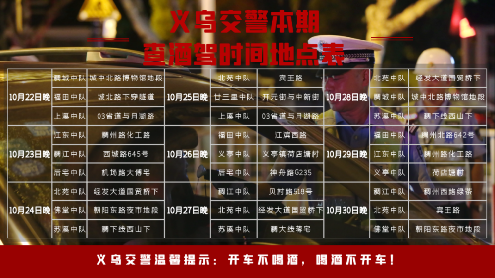 义乌交警公布查酒驾时间地点已经两周了