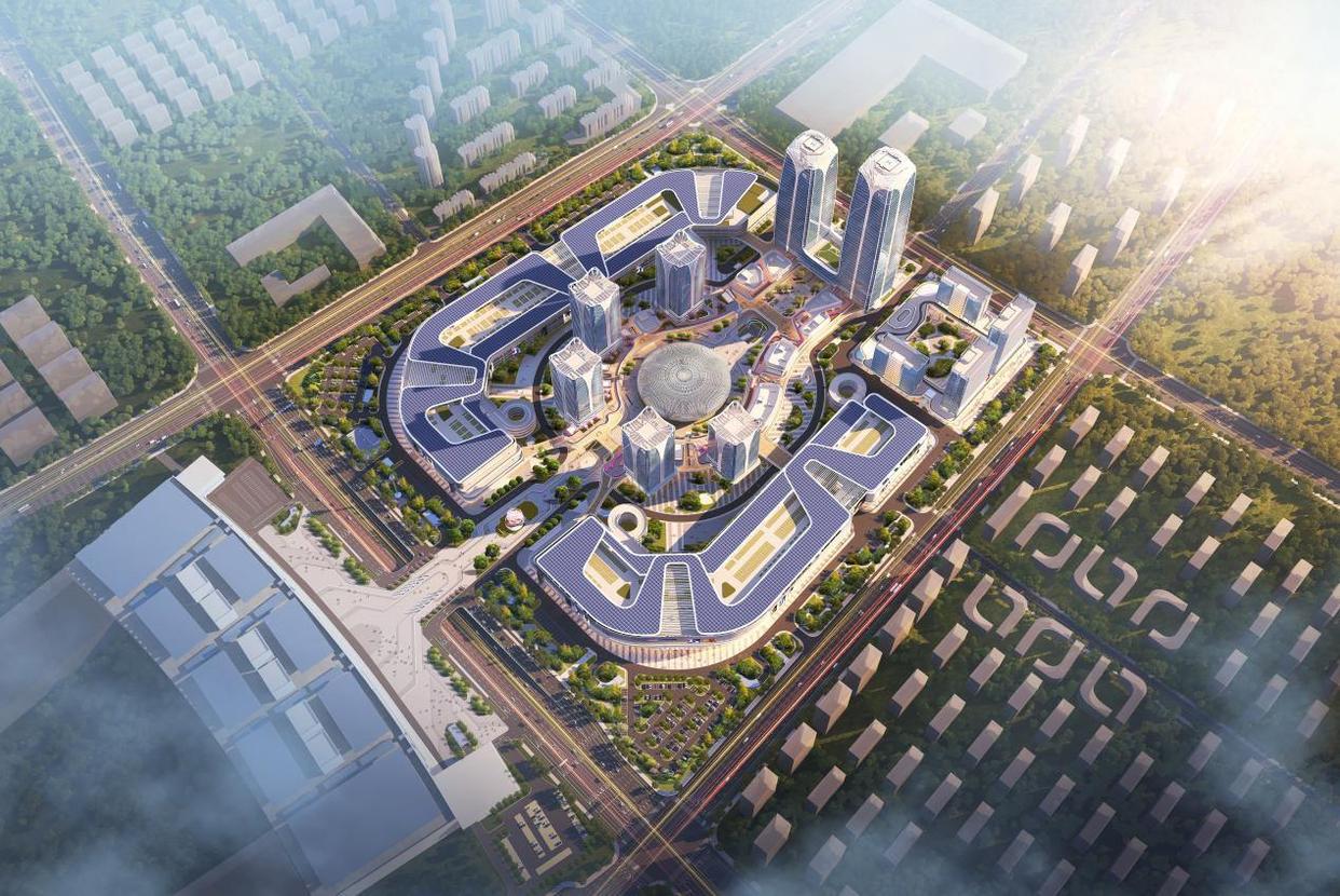 项目以“数贸港”为核心,采用“市场环”与“商务环”双环联动布局,集市场交易、商务办公、商业休闲、人才公寓等多元功能于一体。其打破传统平面市场格局,实现三维立体市场升级,创新落地“市场上楼”模式,并以数字化技术为引擎,推动线上线下深度融合,完成向四维智慧市场的跨越式跃迁,成为未来市场形态的前瞻性探索。