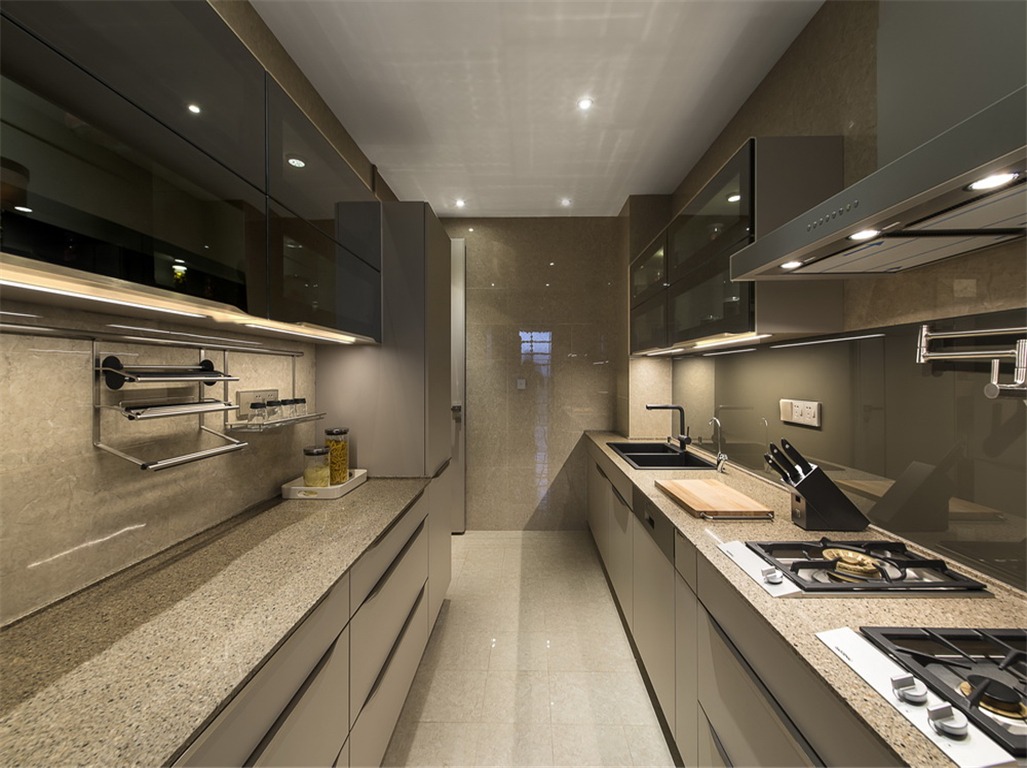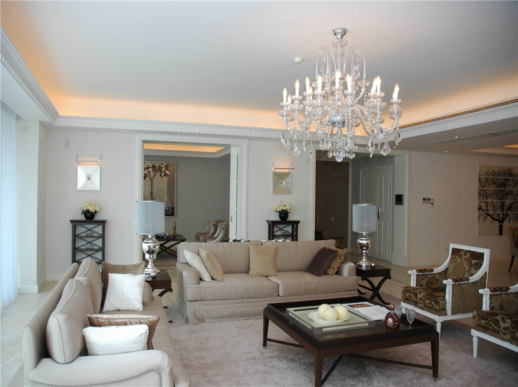 四室两厅两卫的设计,给予了一家五口三代人舒适宽敞的生活空间。镜面玻璃与水纹大理石的搭配,更衬以设计的错觉,让灯光在镜面的折射下,更加熠熠生辉,灯光所带来的暖一下子蔓延开来,满室的温暖。