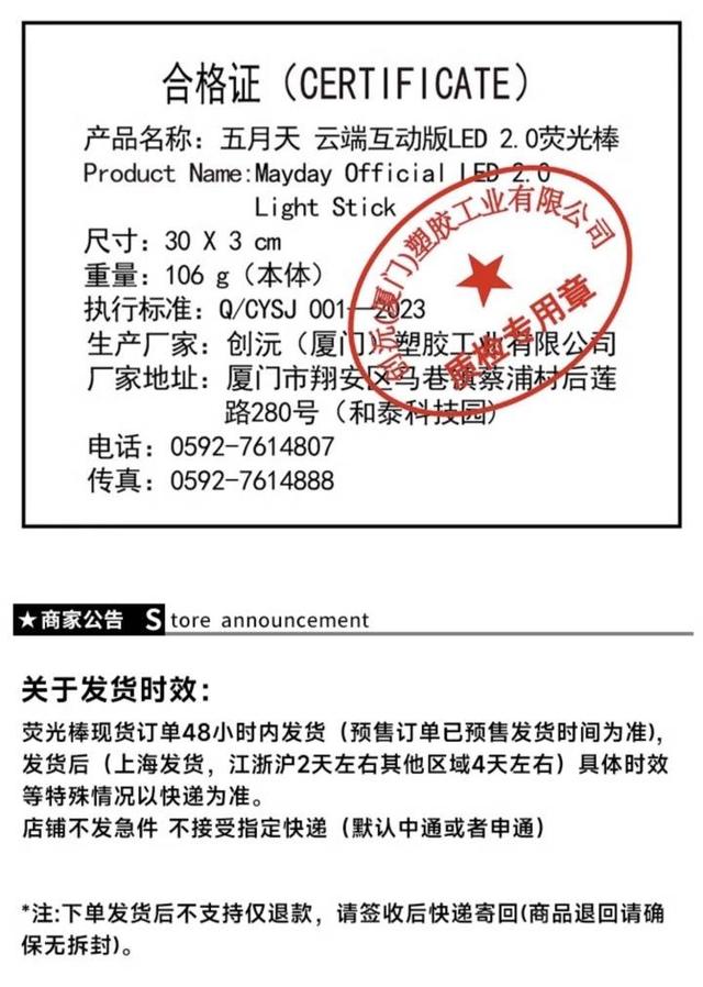 五月天演唱会荧光棒的生产厂家位于福建厦门